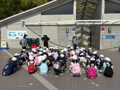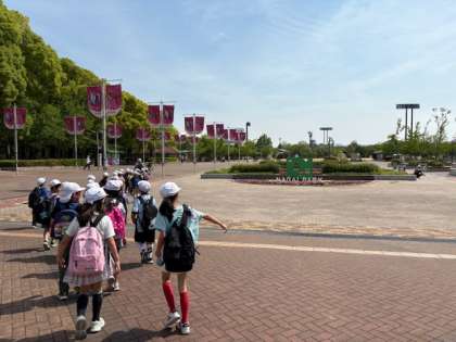 今日は2年生が長居公園に遠足に来ています。先程到着し、トイレタイムです。この後、自然史博物館に行きます!