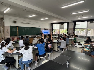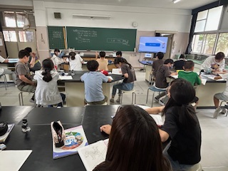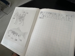 理科室で、ヒトの呼吸によって吸収される気体、出される気体について学習していました。