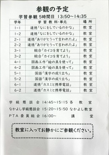 本日は、学習参観日となっています。大変お忙しい中とは存じますが、ぜひとも子どもたちの様子を参観していただきますようお願いいたします。
