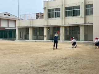 ゴールラインより向こうにあるカラーコーン目指して、走り抜きます。