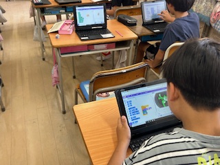 授業終わりのちょっとした隙間時間には、タブレット端末でプログラミングをしました。