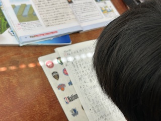 輪中での米づくりについて、資料や動画を参考に調べていました