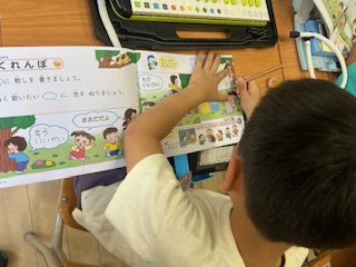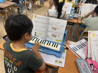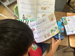 「かっこう」の曲にのって、休符の拍の取り方を学習していました