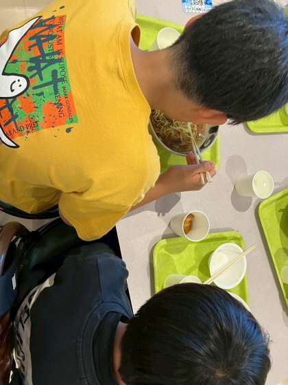 混む前の早めの時間に、ミールクーポンでお昼ご飯をたべているグループもあります