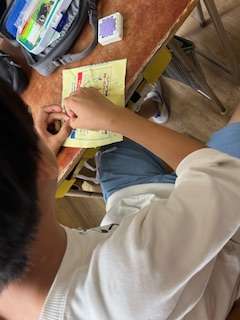 みんな、集中して自分の名前を縫っていました!