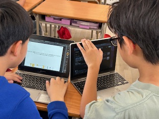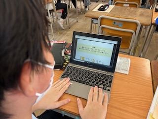 自分のテーマにあった提案書を学習者用端末を使ってまとめていました