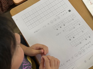 「しょっき」など小さい「つ」「や」の学習をしていました