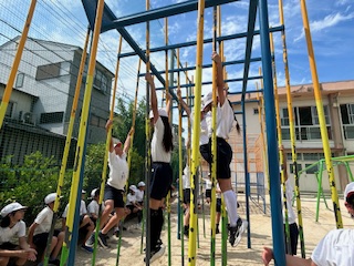 鉄棒の練習から始まって、のぼり棒をのぼる練習までしました