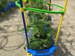 アサガオやミニトマトには、支柱がたてられています