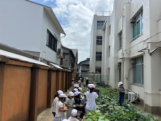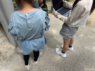 育てている野菜の様子を観察して、学習者用端末で記録をとっています