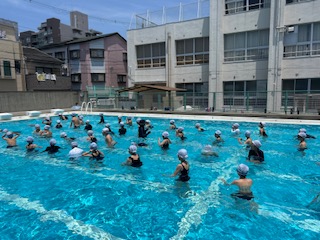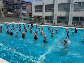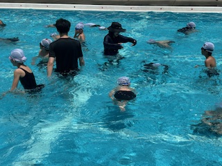 水慣れのためのだるま浮きなど、よく指示を聞いてできています