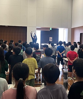 実験の説明を静かにしっかり聞くことができています