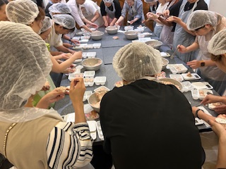 申込みをした保護者の方が、豚まんとシュウマイの手作り体験をしました