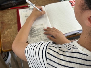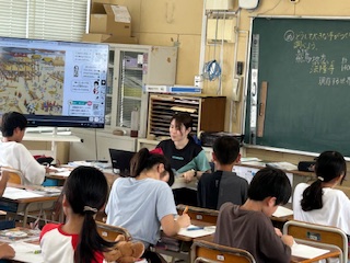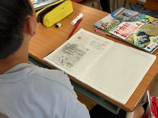 法隆寺建立の資料について、デジタル教科書の画面を見ながら気がついたことを話し合っていました