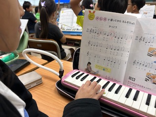 「かっこう」の鍵盤ハーモニカのテストをしていました