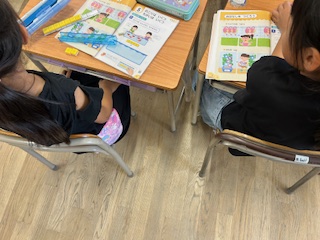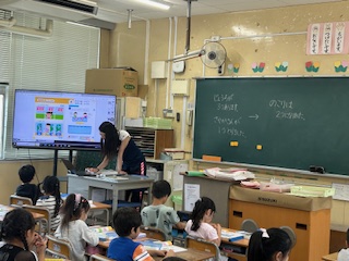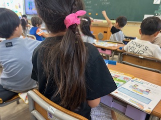 画面を見たり、先生の話しを聞くときは、静かに聞く姿勢ができていますね