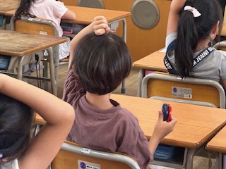 そのあと、カスタネットでリズムまねっこをしました