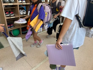 お兄さんお姉さんが、1年生をお迎えに来てくれています