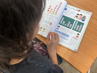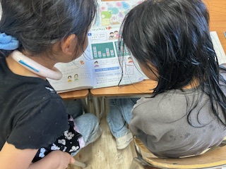 友だちと話し合ったり、自分でじっくり考えたりしながら、この絵カードの表を読み取ります