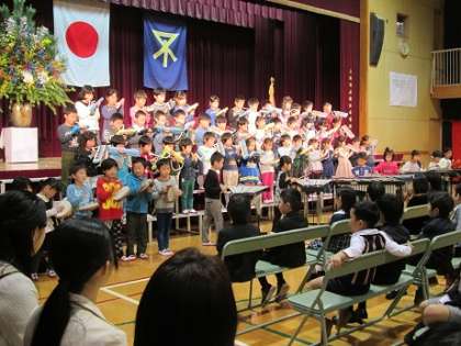2年生は、歓迎の歌やよびかけ、合奏をしました。