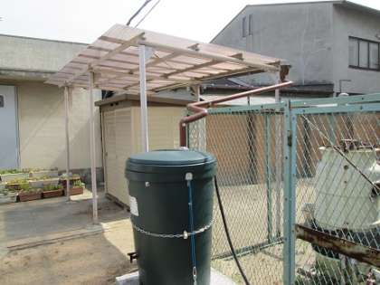 屋根に降った雨を集めて、タンクに貯蔵し、いつでも使えるようにしています。