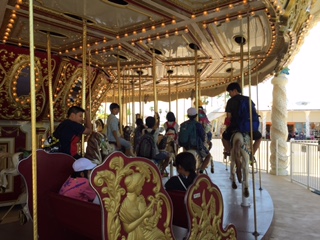 抜けるような青空のもと、子どもたちは様々なアトラクションを満喫しています。