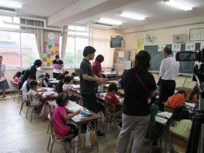 小中連携の一環で、北粉浜小学校の先生も授業を見に来られました。