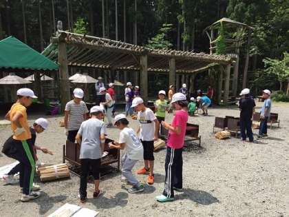 火おこしから始まり、材料を切ったり、飯ごうでご飯を炊いたり。