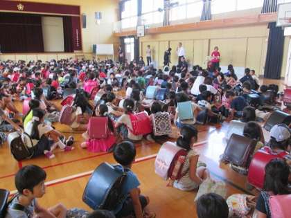 本日、3時間目に台風を想定した避難訓練をしました。