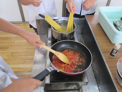 トマトソースのパスタ作りです。