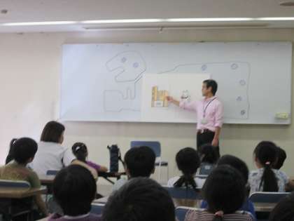 図書館のキャラクターを使って説明してくれたので、子どもたちは興味を持ってきいていました。