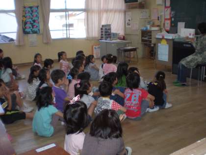 1年生のお話会の時にのぞきに行きましたが、子どもたちも食い入るように絵本を見て、お話の世界に入り込んでいました(写真)。