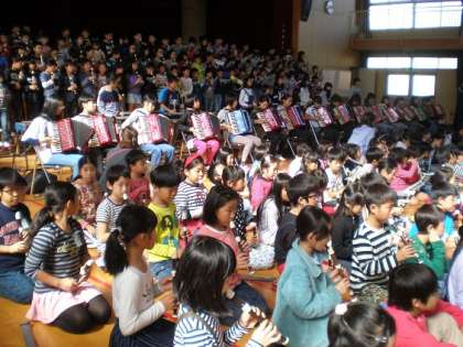 この日は、それぞれクラスで練習してきた合奏や歌を初めて合わせました。