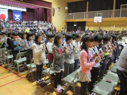 「ふるさと」の合唱や、「春」の合奏、よびかけなど…、心を1つにして、感動的でした。
