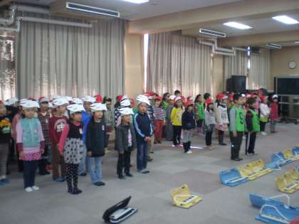 今日(1月23日)は、1年生がふれあいルームで学習発表会の練習をしているところをのぞきにいきました。