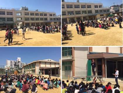 担任の指示の下、1年生も含めどのクラスも、てきぱき行動して避難することができました。