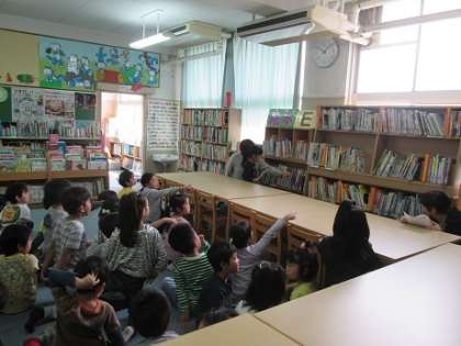 1年生には、ペープサートを使って、図書室の使い方、本の借り方返し方などを、分かりやすく教えてくれました。