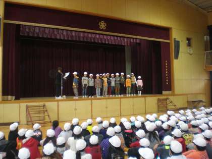 そういえば、2月10日の朝会では、住之江区冬季サッカー大会で3年生チームが総合2位、1年生チームが1年生リーグで3位の表彰を受けていました。(写真中・下)