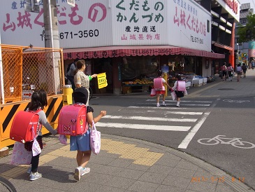 月曜のせいか、ランドセル以外の荷物もたくさん手に持っており、私達のころと比べると荷物は確実に重くなっていると思います。