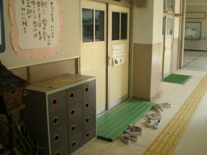 最近、給食の時間になると校長室の前に上靴がならんでいます。