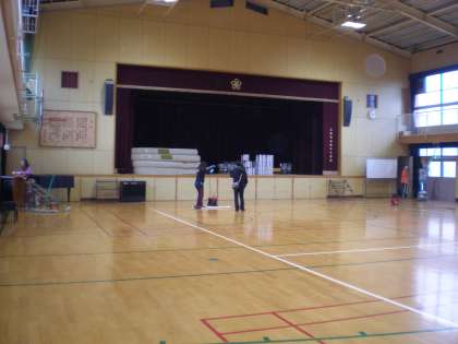 PTAバレーのみなさんが、体育館のワックスがけをしてくださると聞いていたので、のぞいてみると、まだ作業ははじまっていませんでした(浜口ソフトが運動場で練習中)