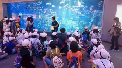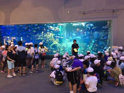 班ごとに、水槽の魚、ジュゴン、アシカショーなどを見学します。