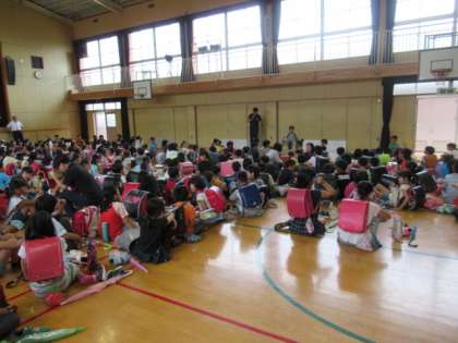 地区会の後半では、講堂に集まり、集団下校をしました。