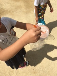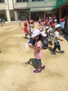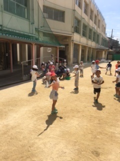5時間目、校庭でシャボン玉で楽しく遊ぶ1年生の歓声が響きました。