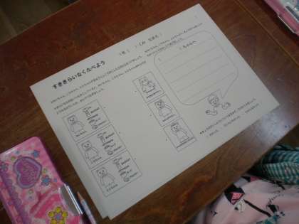 紙芝居の後はワークシートを使って、学習をまとめていきます。