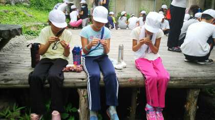 カレー作りの片づけが終わったら、ウッドペンダント作りです。