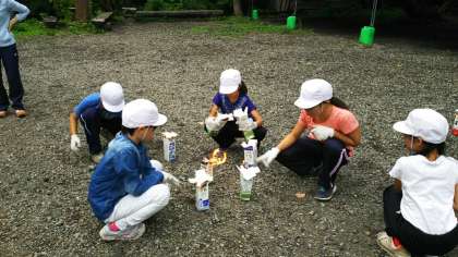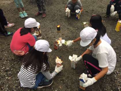 材料を牛乳パックに詰め、燃やして作ります。