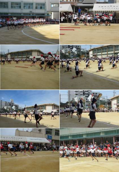 5年生の団体競技は、棒引き(5)、午前のプログラムを締めくくる団体演技エイサー(5)、個人走は、リレー(5)でした。