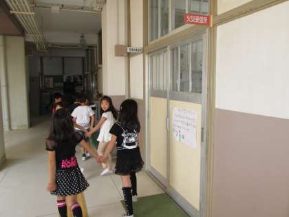 しっかりと1年生の手をつなぎ、いつも以上にゆっくりと廊下を歩く2年生。
