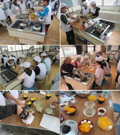 昨日の緊張した卒業式から一転、リラックスした雰囲気で調理実習を楽しんでいました。